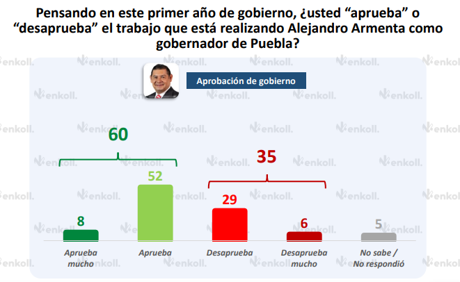 Noticias Cierra Armenta el 2025 con 60% de aprobación: Enkoll diciembre 30, 2025 El Humanista. Puebla, Pue. — Al cumplirse el primer año de su administración, el gobernador de Puebla, Alejandro Armenta Mier, mantiene un sólido respaldo ciudadano. De acuerdo con el más reciente estudio…