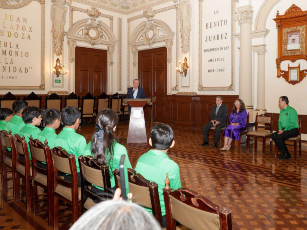 Puebla, Pue.— En una ceremonia celebrada en el Salón de Cabildo del Palacio Municipal, el alcalde de Puebla, Pepe Chedraui Budib, encabezó la entrega de reconocimientos a las y los “Niños Calculadora”, quienes pusieron en alto el nombre de la ciudad tras su destacada participación en el Campeonato Mundial de Cálculo Mental en Alemania. Foto: Gobierno Municipal de Puebla Los pequeños fueron recibidos por el presidente municipal y el secretario del Ayuntamiento, Joaquín Espidio, tras haber obtenido los puntajes más altos durante la competencia. Chedraui elogió las habilidades excepcionales y la destreza mental de los estudiantes, calificándolos como un ejemplo de excelencia para toda la capital. Foto: Gobierno Municipal de Puebla Durante el encuentro, las autoridades aseguraron que continuarán impulsando el apoyo a la niñez y la juventud poblana brindándoles las herramientas necesarias para ayudarlos a perseguir sus sueños y, de esta manera invertir en el capital intelectual de Puebla. Navegación de entradas Refuerzan Sanidad Animal en Xicotepec: Vacunan Ganado contra el Gusano Barrenador Puebla será la sede oficial de la Olimpiada Nacional 2026