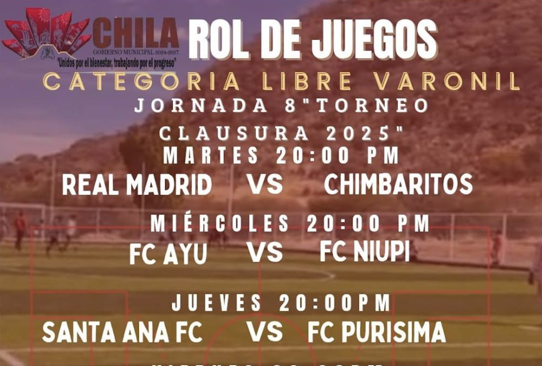 Deportes Municipales Chila promueve el deporte comunitario noviembre 25, 2025 El Humanista. Chila, Puebla.- El Ayuntamiento presidido por María Teresa Rosas Andrade, lanzó la invitación a toda la ciudadanía para asistir a los encuentros de fútbol que se realizarán con el objetivo…
