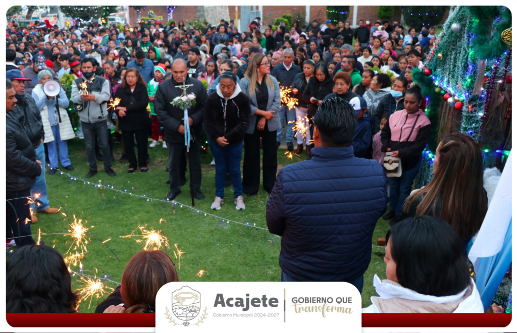 Acajete, Pue. — El municipio dio inicio a sus festividades decembrinas con la tradicional recepción de los Santos Peregrinos y un espectacular Desfile Navideño, eventos encabezados por el alcalde Cristian Flores Flores y la presidenta honoraria del SMDIF, Crisna Lidia Flores Robles. Foto: Gobierno Municipal de Acajete La celebración comenzó en el Palacio Municipal, que se transformó en el epicentro de la fe y la esperanza al recibir a los peregrinos en una emotiva posada en la que regidores, personal administrativo y ciudadanía compartieron la tradición y fortalecieron los lazos comunitarios para preservar las raíces culturales de la demarcación. Foto: Gobierno Municipal de Acajete Posteriormente el festejo se trasladó a las principales avenidas de la cabecera municipal con el Desfile Navideño. El recorrido fue protagonizado por coloridos carros alegóricos alegraron la noche para las familias que asistieron para disfrutar del espectáculo. Foto: Gobierno Municipal de Acajete Con estas acciones, el gobierno municipal busca no solo brindar entretenimiento, sino consolidar un entorno de armonía y bienestar social durante la temporada más esperada del año. Navegación de entradas Refuerzan seguridad en Paso de Cortés con la instalación de 169 nuevas luminarias LED Impulsan el campo en Zacatlán con la entrega de aves y árboles frutales a 500 productores