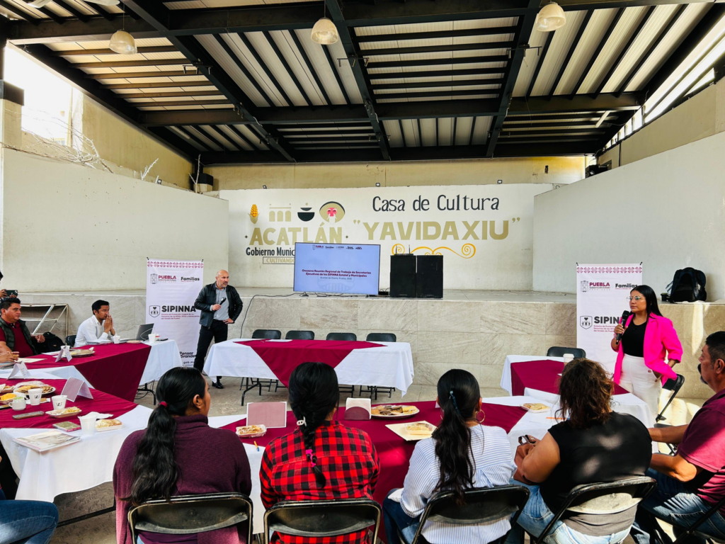 Acatlán, Pue. — El Gobierno Municipal, encabezado por Lupita Bárcenas, fue sede de la Onceava Reunión Regional de Trabajo de Secretarías Ejecutivas de los SIPINNA Estatal y Municipales. El encuentro, celebrado en la Casa de Cultura Yavidaxiu, convocó a representantes de diversos municipios de la región. Foto: Gobierno Municipal de Acatlán El evento buscó fortalecer las acciones y estrategias conjuntas que garanticen y protejan los derechos de las niñas, niños y adolescentes, priorizando siempre su bienestar y futuro. Foto: Gobierno Municipal de Acatlán El Ayuntamiento destacó que Acatlán continúa consolidándose como un referente de unidad y sensibilidad social, abriendo sus puertas al diálogo intermunicipal para impulsar causas que transforman positivamente las vidas de los más jóvenes. Navegación de entradas Refuerzan los tres órdenes de gobierno acciones en materia de salud Inician Construcción de Plaza Cívica en Jardín de Niños Xochicalco