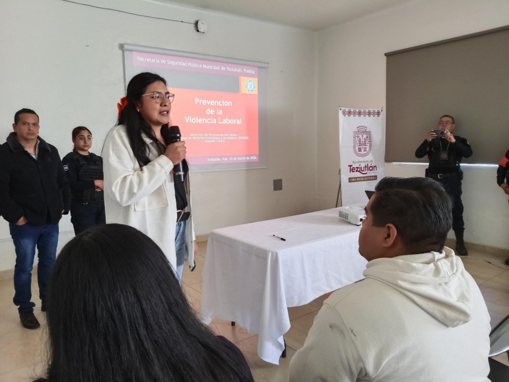 Teziutlán, Pue. — La presidenta municipal Karla Martínez Gallegos puso en marcha una jornada de capacitación bajo el título “Identificación sobre la Violencia en el Área Laboral”, dirigida a las y los servidores públicos de la administración para fomentar un entorno de respeto y equidad. Foto: Gobierno Municipal de Teziutlán Esta iniciativa forma parte del Eje A1 del Plan de Desarrollo Municipal, a través del cual se busca dar prioridad a acciones en favor de la consolidación de ambientes laborales inclusivos, donde el trato igualitario sea la norma y se garantice un servicio a la ciudadanía basado en la armonía y el profesionalismo. Foto: Gobierno Municipal de Teziutlán Cabe destacar que, la formación fue coordinada por la Dirección de Equidad de Género y Juventud del Instituto Municipal de la Mujer, en un colaboración con la UDAIM, el Juzgado Cívico y el área de Prevención del Delito, asegurando una visión integral y jurídica sobre el respeto a los derechos humanos en el trabajo. Asimismo, las autoridades informaron que el objetivo principal de este programa es dotar al personal de herramientas para detectar y prevenir cualquier conducta que vulnere la integridad de las y los trabajadores. Foto: Gobierno Municipal de Teziutlán Al fortalecer los protocolos internos, el Ayuntamiento de Teziutlán se posiciona como una institución comprometida con la erradicación de la violencia de género y el acoso, transformando la cultura organizacional para proyectar un municipio más justo y seguro desde sus propias oficinas. Navegación de entradas Tonantzin Fernández y el DIF municipal transforman vidas con la entrega de aparatos funcionales en San Pedro Cholula Tlanepantla fortalece su sistema de salud con equipo médico y modernización de ambulancia SUMA