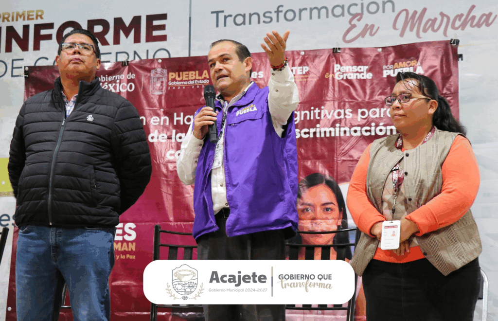 Acajete, Pue. — El Gobierno Municipal de Acajete, en coordinación con el ICATEP (unidad Amozoc) y la Secretaría de las Mujeres del Estado, puso en marcha la “Capacitación en Habilidades Cognitivas para la Prevención de la Violencia y Discriminación contra la Mujer”. Foto: Gobierno Municipal de Acajete El evento fue encabezado por el Presidente Municipal, Cristian Flores Flores, y la Regidora de Igualdad de Género, Grecia Rodríguez Fuentes. El taller, impartido por la ponente Evelin Carcaño, busca invitar a la reflexión, al respeto y a la prevención de cualquier forma de violencia contra las mujeres. Foto: Gobierno Municipal de Acajete A la inauguración también asistieron Urijabnel de la Rosa Esparza, Directora del ICATEP Amozoc, y Rafa Huerta Limón, en representación de la Secretaría de las Mujeres del Estado, Yadira Lira Navarro. Foto: Gobierno Municipal de Acajete Con estas acciones, el gobierno municipal reafirma su compromiso de seguir fomentando espacios seguros, incluyentes y con igualdad de oportunidades para todas y todos en Acajete. Navegación de entradas SCJN Desecha Amparo de Elektra y Ordena Pago de $33 Mil Millones al SAT Concluyen Pavimentación Incluyente en San José Los Cerritos