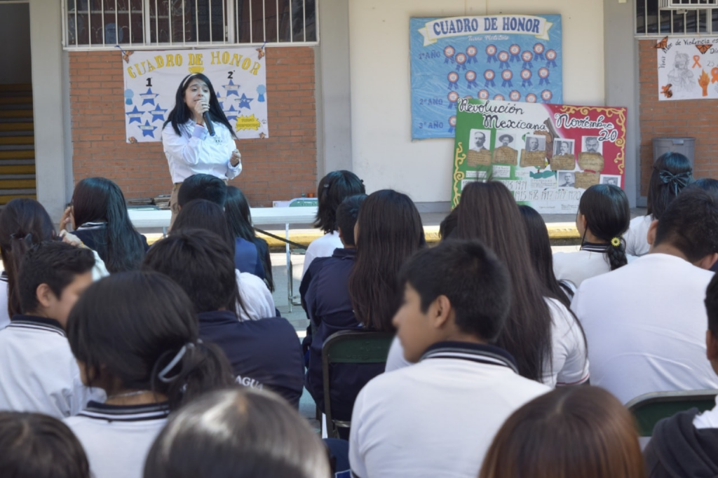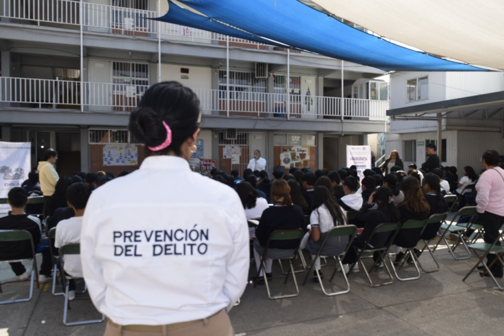 San Pedro Cholula, Pue. — Más de 180 alumnas y alumnos de los turnos matutino y vespertino de la Secundaria José María La Fragua participaron en la plática “Violencia en el noviazgo”, como parte de las acciones permanentes de prevención del delito. Foto: Gobierno Municipal de San Pedro Cholula La jornada, realizada por la Dirección Prevención del Delito y Atención a Víctimas municipal, en colaboración con el Centro Estatal de Prevención Social de la Violencia y la Delincuencia, forma parte de las actividades del Día Naranja y tuvo como objetivo informar y proteger a la juventud sobre los riesgos que implica la violencia de género en las relaciones afectivas. Foto: Gobierno Municipal de San Pedro Cholula La Regidora de Igualdad Sustantiva, Liz Minto, asistió al encuentro para recordar la importancia del trabajo coordinado entre el estado y el municipio. Las autoridades destacaron que su presencia refleja la disposición para acompañar a las juventudes en la construcción de espacios seguros, informados y libres de violencia. Navegación de entradas Armenta Impulsa Plan de 5 Mil Calles; Supervisa Vía Olvidada Cerca de su Antigua Primaria Oriental inaugura rehabilitación de red de agua, drenaje y pavimento con adoquín en la 14 Norte