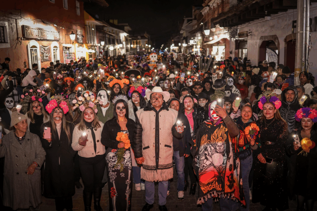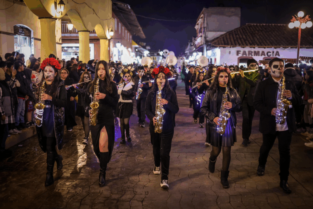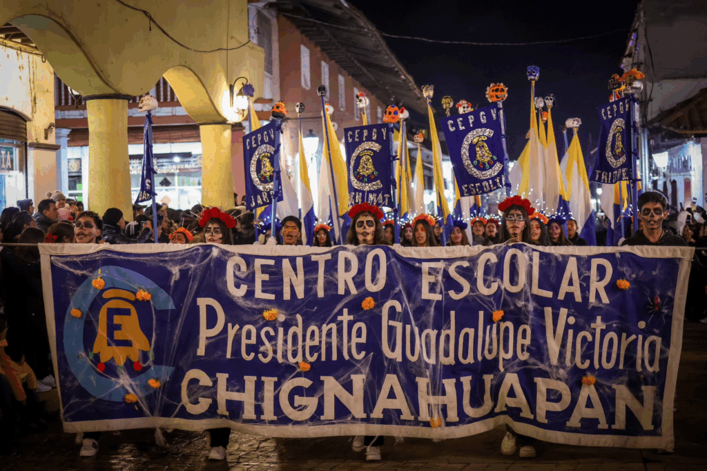 Chignahuapan, Pue. — Las calles de Chignahuapan se inundaron de tradición y color este fin de semana con el emotivo Desfile de la Calavera, un evento que sirvió como cierre del Festival de la Luz y de la Vida 2025. Foto: Gobierno Municipal de Chignahuapan Familias completas salieron a disfrutar de un recorrido lleno de música, misticismo y un profundo respeto por la memoria de los difuntos, en un ambiente que destacó por la paz y la unión comunitaria. Foto: Gobierno Municipal de Chignahuapan El desfile contó con la participación de la ciudadanía, incluyendo contingentes de diversas instituciones educativas como la Escuela I.P.E.M., la Primaria “Carmen Serdán”, la Secundaria Técnica No. 34, el CECYTE y la BUAP. A ellos se sumaron agrupaciones locales como danzantes, boleros, “Amigos a Caballo”, “Villa Iluminada” y “Ajolotur”, quienes dieron vida a cada paso del recorrido. Foto: Gobierno Municipal de Chignahuapan Con esta celebración, el Pueblo Mágico reafirmó que sus tradiciones están “más vivas que nunca”, en un homenaje que fortalece la identidad y conecta a la comunidad con sus raíces. Navegación de entradas Avanza Saneamiento contra Gusano Descortezador en La Malinche; Tepatlaxco Supera Meta Inicial Capacitan en Acajete sobre Erradicación de la Violencia de Género y Sororidad