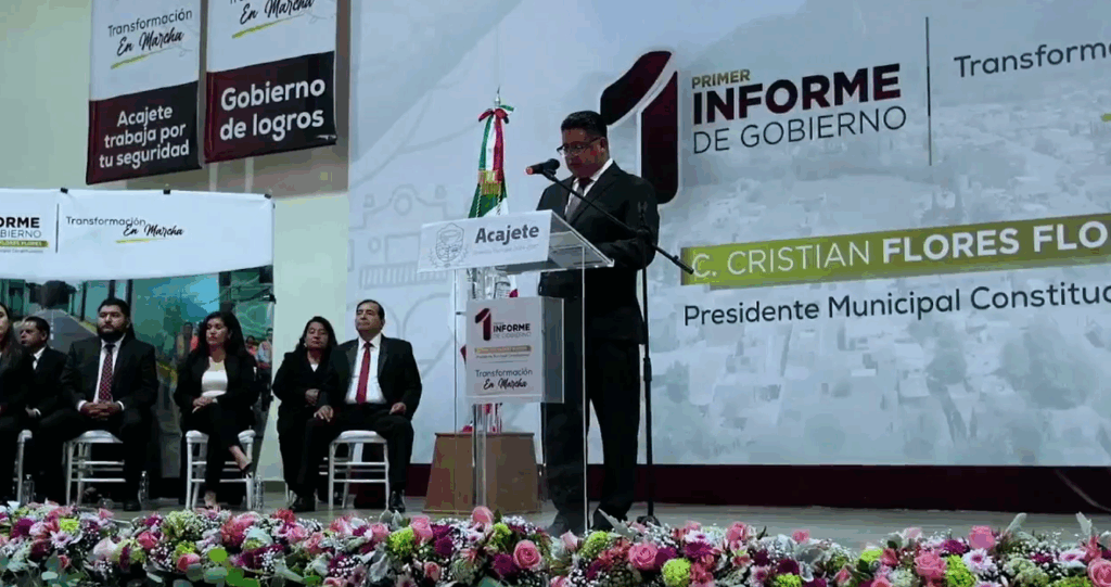 Acajete, Pue. — El presidente municipal de Acajete, Cristian Flores Flores, presentó su Primer Informe de Gobierno este 20 de octubre, destacando la ejecución de 90 obras y acciones concretas para fortalecer la seguridad como eje central de su administración. Acompañado por el cabildo, presidentes auxiliares y un representante del gobernador Armenta, el edil declaró: “En Acajete hoy se avanza con pasos firmes”. Durante su mensaje, Flores Flores enfatizó que “la seguridad es uno de los pilares fundamentales” para el desarrollo del municipio. En este eje, informó la contratación de nuevos elementos de policía y bomberos, la reparación de cuatro unidades y la adquisición de dos motopatrullas nuevas por parte del gobierno estatal. Además, se adquirieron chalecos balísticos y nuevo armamento, y se instaló la Comisión de Honor y Justicia para la carrera policial. El alcalde reportó la recuperación de 32 vehículos con reporte de robo, la capacitación de los elementos y la realización de elecciones auxiliares con “saldo blanco”. En materia de infraestructura, el edil reportó la ejecución de diversas obras y acciones con recursos de fondos como FORTAMUN y FAISMUN. Subrayó la intervención de casi 10 km de alcantarillado, casi 15 km de nuevas vialidades, 12.5 km de nuevas líneas de conducción de agua potable, la rehabilitación de 300 puntos de la red eléctrica, la pavimentación con concreto hidráulico y adoquín, y la adquisición de 2 camiones recolectores de basura. En el ámbito social y de salud, se informó sobre más de 700 traslados en ambulancia, 1,500 apoyos en jornadas de salud y la aplicación de 8,332 vacunas antirrábicas. El DIF Municipal, que encabeza su esposa, entregó 4,910 despensas y apoyos a desayunadores escolares, además de atender a más de 250 adultos mayores. El sector educativo recibió 102,247 libros de texto gratuitos, se rehabilitaron aulas y 40 adultos concluyeron sus estudios de primaria y secundaria. Para el campo, se impartieron talleres a más de 540 productores y se activaron programas “peso a peso” para la entrega de herramientas, electrodomésticos y calentadores solares a bajo costo. “Gobernar Acajete no es solo una responsabilidad, sino un compromiso que se debe asumir con entrega y dedicación cercana a la gente”, expresó Flores. “Hoy la transformación no solo es un discurso, es una realidad. Seguiremos trabajando juntos con unidad, esperanza y convicción”, concluyó. Navegación de entradas La Transformación Avanza en Cholula: Tonantzin Fernández Rinde Primer Informe con Énfasis en Seguridad y Obra Social Acelera Armenta la reconstrucción tras la emergencia