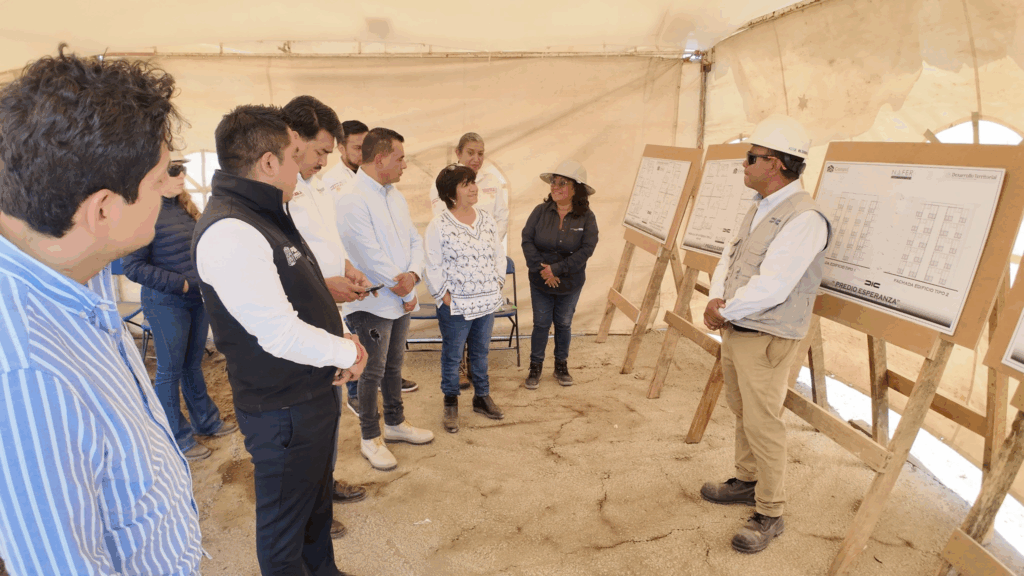 Esperanza, Pue.— El presidente municipal Isaac Rodríguez Ochoa en compañía de la secretaria de Desarrollo Agrario, Territorial y Urbano del Gobierno de México (SEDATU), Edna Vega Rangel; el secretario de Bienestar en Puebla, Javier Aquino Limón; y el subsecretario de Vivienda de la Secretaría del Bienestar, José Luis Figueroa Ortiz, realizó un recorrido por la zona de construcción para supervisar los avances del Programa de Vivienda para el Bienestar. Foto: Gobierno Municipal de Esperanza Este proyecto, impulsado por el Gobierno de México con el respaldo de la presidenta Claudia Sheinbaum Pardo y del gobernador Alejandro Armenta, beneficiará a más de 300 familias del municipio de Esperanza que actualmente carecen de vivienda digna. Cabe destacar que Esperanza es uno de los tres municipios en todo el estado que cuentan con esta iniciativa, considerada de gran impacto social. Foto: Gobierno Municipal de Esperanza Durante la visita, el alcalde subrayó la importancia de este programa para mejorar la calidad de vida de las familias y agradeció el apoyo de las autoridades federales y estatales. Asimismo, se informó que las obras se prevén concluir a mediados de 2026, con lo que se garantizará el cumplimiento del objetivo de brindar viviendas dignas a quienes más lo necesitan. Foto: Gobierno Municipal de Esperanza Navegación de entradas Gobierno de Tehuacán beneficia a más de 4 mil familias con apoyos alimenticios y servicios integrales Cuautlancingo anuncia nueva estación de bomberos y adquisición de unidad de ataque rápido