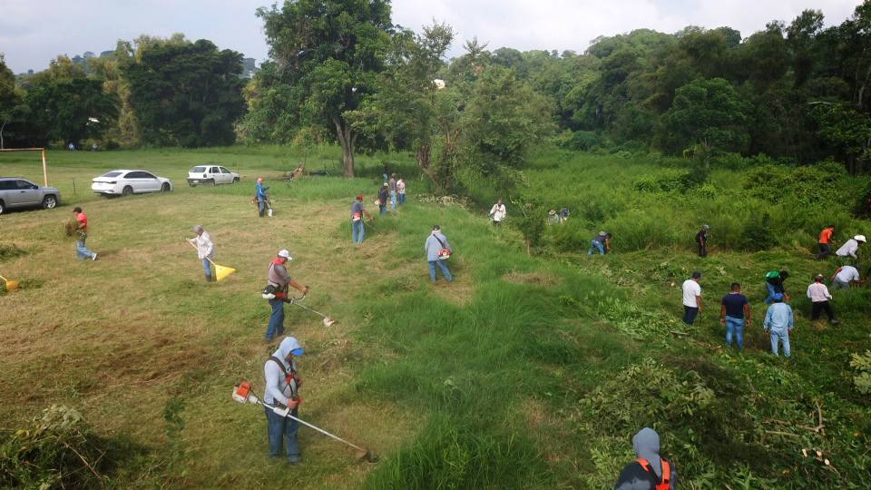 El objetivo principal fue avanzar en las labores de limpieza y preparación del terreno, donde se contempla la construcción de canchas de basquetbol y zonas recreativas, como parte de un proyecto integral de rehabilitación del espacio.