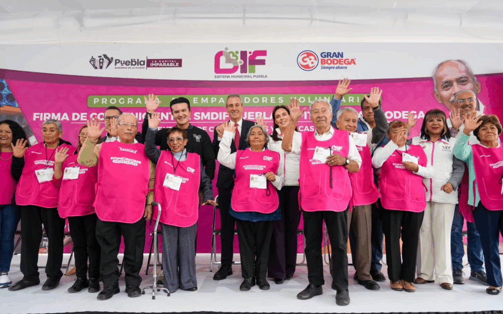 Puebla, Pue.— En un esfuerzo conjunto por fomentar la inclusión laboral y el bienestar de las personas adultas mayores, el Gobierno Municipal de Puebla, encabezado por el alcalde Pepe Chedraui, firmó un convenio de colaboración con la empresa poblana La Gran Bodega, a través del Sistema Municipal DIF (SMDIF) que preside MariElise Budib. Foto: Gobierno Municipal de Puebla Este acuerdo permitirá la incorporación de 300 adultos mayores al programa “Empacadores Voluntarios”, brindándoles una oportunidad de autoempleo en un ambiente digno y seguro dentro de las distintas sucursales de esta cadena comercial. Como parte del acto simbólico, los participantes recibieron casacas e identificaciones oficiales, reconociendo formalmente su labor. Durante el evento, el edil Pepe Chedraui resaltó que la política de inclusión social impulsada tanto por la presidenta Claudia Sheinbaum como por el gobernador Alejandro Armenta, ha sido clave para generar este tipo de acciones. “Nuestras personas adultas mayores merecen continuar siendo parte activa de la sociedad y de la vida productiva”, enfatizó. Por su parte, MariElise Budib, presidenta del Patronato del SMDIF, subrayó que este programa tiene un impacto directo en la calidad de vida de los beneficiarios: “Creamos espacios que les permiten reincorporarse con orgullo y dignidad a una vida laboral activa”, expresó. Foto: Gobierno Municipal de Puebla En representación de La Gran Bodega, su director ejecutivo de operaciones, Enrique Rivera Salinas, agradeció la colaboración institucional, destacando el valor que aportan los adultos mayores a la empresa. “No están aquí por lo que les falta, sino por todo lo que tienen para dar. Su entusiasmo y compromiso diario nos inspiran”, afirmó. Con estas acciones, el Ayuntamiento de Puebla refuerza su compromiso con la inclusión, la dignidad y el respeto hacia las personas mayores, estableciendo alianzas con el sector privado para continuar generando oportunidades de desarrollo y participación activa en la vida comunitaria. Navegación de entradas Amozoc lanza el Proyecto Parajes Naranja para fortalecer la seguridad ciudadana Xicotepec es sede de capacitación estatal sobre atención a mujeres víctimas de violencia de género