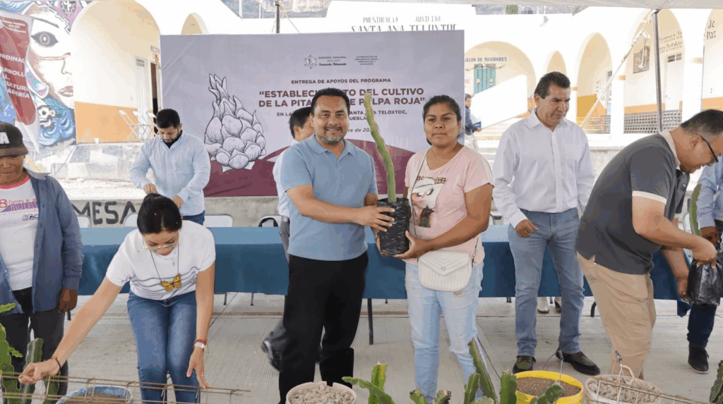 Tehuacán, Pue. — El Gobierno de Tehuacán puso en marcha un nuevo programa de apoyo para la junta auxiliar de Santa Ana Teloxtoc, que incluye el fomento al cultivo de pitahaya y la entrega de un vehículo para servicios comunitarios. Foto: Gobierno Municipal de Tehuacán Como parte de la iniciativa agrícola, las autoridades entregaron a productores locales 3,500 plantas de pitahaya junto con todos los insumos necesarios para su cultivo. El objetivo de este programa es fortalecer la economía de las familias de la región a través de la diversificación de sus cosechas. Foto: Gobierno Municipal de Tehuacán Adicionalmente, se hizo entrega de una camioneta para uso exclusivo de la comunidad. El vehículo, según informó el ayuntamiento, estará destinado principalmente al traslado de adultos mayores y de personas que requieran atención médica urgente, funcionando como “un recurso del pueblo para servir al pueblo”. Foto: Gobierno Municipal de Tehuacán El gobierno municipal señaló que estas acciones, realizadas este fin de semana, reafirman su compromiso de trabajar por el desarrollo de las juntas auxiliares y por mejorar la calidad de vida de sus habitantes a través de hechos concretos. Navegación de entradas Con Gran Participación, Celebran Primer Zumbatón en Acajete Arranca en Esperanza el “Zumbatón al Ritmo de Puebla” para promover la activación física
