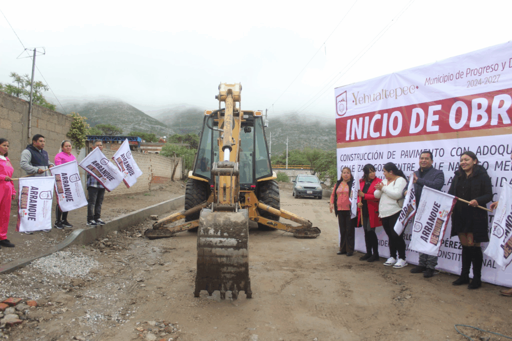 Yehualtepec, Pue. — El presidente municipal Carlos Pérez Pérez, en compañía del cuerpo de regidores y vecinos de la zona, dio el banderazo de inicio a la obra de pavimentación con adoquín en la calle Zaragoza, entre las calles Narciso Mendoza y Ahuehuete. Foto: Gobierno Municipal de Yehualtepec El proyecto contempla la intervención de 126 metros de longitud por 8 metros de ancho, lo que equivale a un total de 1,012.80 metros cuadrados de pavimento. Durante su mensaje, el alcalde reafirmó su compromiso de seguir impulsando obras que transformen la vida de los ciudadanos, en sintonía con las directrices del Gobierno del Estado que encabeza el gobernador Alejandro Armenta. Foto: Gobierno Municipal de Yehualtepec Vecinas y vecinos agradecieron al gobierno local por atender una petición que llevaba años siendo solicitada por la comunidad. En tanto, el Departamento de Obras Públicas pidió a los residentes que anticipen las conexiones de drenaje y agua potable, con el fin de evitar afectaciones posteriores a la finalización de los trabajos. Navegación de entradas Inauguran rehabilitación de la calle Cholula en San Sebastián Tepalcatepec Refrenda gobierno de Alejandro Armenta compromiso con el desarrollo rural en la Mixteca poblana