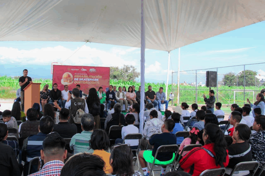 Huejotzingo, Pue.— El presidente municipal, Roberto Solís Valles, dio el banderazo de arranque a las obras de rehabilitación del Parque Skate “Quetzalcóatl”, proyecto que tiene como objetivo convertir el lugar en un espacio digno para el deporte, la convivencia y el esparcimiento de la comunidad. Foto: Gobierno Municipal de Huejotzingo De acuerdo con el edil, las acciones incluyen la renovación de la cancha de fútbol, que contará con pasto sintético, nuevas porterías y malla perimetral; la mejora de las canchas de básquetbol con pintura, tableros y gradas nuevas; así como la instalación de bancas, juegos infantiles, mesas para picnic y un gimnasio al aire libre. Foto: Gobierno Municipal de Huejotzingo Durante el evento Solís Valles resaltó que este parque, que permaneció en el abandono durante años, será transformado en un punto de encuentro para fomentar la actividad física y la integración familiar, fortaleciendo el sentido de comunidad y hábitos saludables en la zona. Foto: Gobierno Municipal de Huejotzingo Navegación de entradas Gobierno de la Ciudad dedica mural a mujeres sobrevivientes de violencia ácida Inician trabajos de pavimentación con adoquín en calle Terraplén de Lázaro Cárdenas