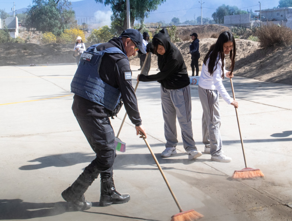 Palmar de Bravo, Pue. — Con el objetivo de dignificar las áreas comunes y fomentar el sentido de pertenencia en la comunidad, este fin de semana se realizaron labores de limpieza y rehabilitación en instalaciones deportivas de Bellavista y la cabecera municipal, como parte de la Jornada Nacional de Tequios en Espacios Deportivos. Foto: Gobierno Municipal de Palmar de Bravo La iniciativa contó con una importante movilización juvenil, durante la cual el CBTis 254 organizó la jornada autónoma “Juntos por el Tequio”, donde estudiantes de la institución coordinaron esfuerzos para el mantenimiento y mejora de diversas áreas. La Dirección de Deporte y Juventud municipal se sumó a este esfuerzo, reconociendo el compromiso de las y los jóvenes por preservar sus lugares de esparcimiento. Foto: Gobierno Municipal de Palmar de Bravo Paralelamente, en la comunidad de Bellavista, se llevó a cabo una faena comunitaria en la cancha de básquetbol. Esta actividad, convocada por la Dirección de Deporte en coordinación con la Delegación de la Micro Región 15, logró reunir a distintas áreas del Ayuntamiento para tareas de recolección de basura, deshierbe y aplicación de pintura. Foto: Gobierno Municipal de Palmar de Bravo A través de estas acciones, el Gobierno de Palmar de Bravo busca incentivar que la juventud sea protagonista en la recuperación de los espacios públicos, garantizando lugares dignos y seguros para la práctica del deporte. Navegación de entradas Juan Rivera inaugura aulas para el Bachillerato de Acolihuia Gobierno de Tehuacán acerca más de 300 servicios de salud gratuitos a estudiantes de la colonia Agrícola El Porvenir