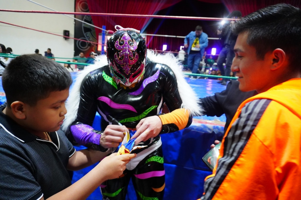 Tehuacán, Pue. — Con el objetivo de apoyar a los sectores más vulnerables a través del Sistema Municipal DIF Tehuacán cientos de familias y aficionados del municipio disfrutaron una función especial de lucha libre. Foto: Gobierno Municipal de Tehuacán La velada contó con la asistencia del presidente municipal, Alejandro Barroso Chávez, acompañado por Letty Carreño Abarca, presidenta del SMDIF, y la directora del organismo, María del Carmen Cruz. Los funcionarios destacaron que este tipo de iniciativas no solo recaudan fondos para programas de asistencia social, sino que también fomentan la convivencia sana y el fortalecimiento de la unión familiar entre las y los tehuacaneros. Foto: Gobierno Municipal de Tehuacán El éxito de la jornada fue posible gracias a la suma de esfuerzos entre el sector público y la iniciativa privada ya que Instituciones como la Arena Coliseo Tehuacán y agrupaciones de luchadores, se unieron a patrocinadores locales de diversos sectores comerciales para hacer realidad esta “lucha con causa”. Las autoridades agradecieron el respaldo de las empresas participantes, subrayando que el trabajo en equipo entre gobierno y sociedad civil es la clave para generar bienestar. Foto: Gobierno Municipal de Tehuacán Con la organización de estos eventos, el Gobierno de Tehuacán y el SMDIF reafirman su compromiso de continuar impulsando acciones solidarias que pongan el corazón en el bienestar de la gente. Señalaron que los recursos obtenidos serán destinados a fortalecer los servicios de salud y apoyo alimentario que brinda el DIF, asegurando que el amor y la vocación de servicio sigan guiando la transformación del municipio. Navegación de entradas Fortalecen educación inicial en Cuautlancingo con mobiliario para 975 niñas y niños Pepe Chedraui inaugura rehabilitación de la Fuente Hermanos Serdán; suma orden e iluminación a la capital