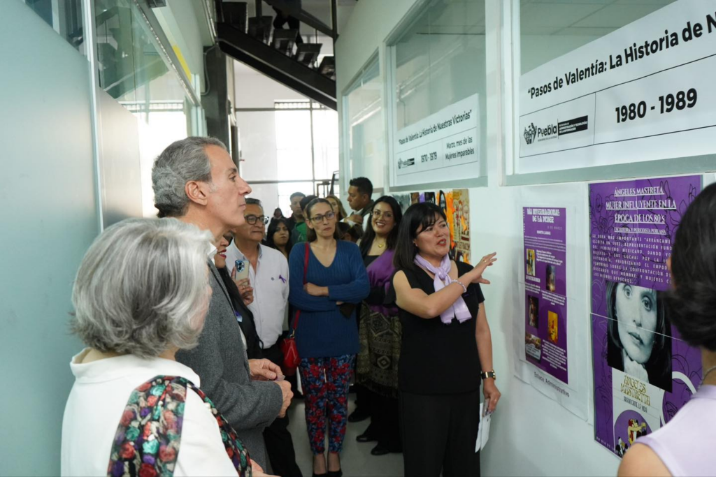 Puebla, Pue. — El presidente municipal, Pepe Chedraui, visitó la exposición “Pasos de Valentía: la historia de nuestras victorias”, una muestra organizada por la Secretaría de Administración y Tecnologías de la Información con motivo del Día Internacional de la Mujer para visibilizar la trayectoria de los derechos femeninos en México. Foto: Gobierno Municipal de Puebla La exhibición cuenta con un recorrido que documenta las conquistas sociales y políticas alcanzadas por las mujeres desde 1930 hasta la actualidad. Durante su visita, el alcalde subrayó que su administración posee las herramientas y la voluntad política necesarias para impulsar una transformación significativa para mejorar las condiciones de igualdad. Foto: Gobierno Municipal de Puebla Chedraui aseguró que parte del compromiso del Gobierno de la Ciudad es garantizar espacios seguros donde niñas, jóvenes y adultas tengan acceso a las mismas oportunidades de desarrollo. Foto: Gobierno Municipal de Puebla Por su parte, el secretario de Administración y Tecnologías de la Información, Juan José Tapia González, detalló que esta muestra y el mural que la acompaña funcionan como un tributo al esfuerzo que día con día realizan las mujeres en favor de la sociedad. La iniciativa busca que tanto los servidores públicos como la ciudadanía reflexionen sobre los retos pendientes y celebren los logros históricos que han definido la participación femenina en la vida pública del país. Navegación de entradas Entrada anterior Presentan Sistema de Movilidad por Cable ante Secretarios de Turismo de México