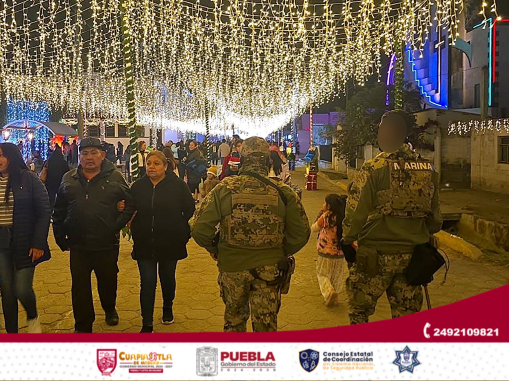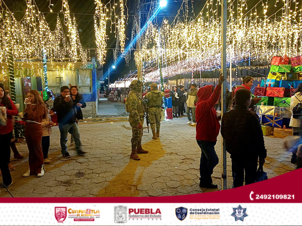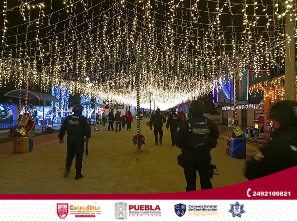 Cuapiaxtla de Madero, Pue. — Con el objetivo de garantizar una estancia segura para las familias y turistas que visitan la villa iluminada, la presidenta municipal Sandra Sánchez Ramos puso en marcha el Operativo Decembrino a Pie de Tierra en la junta auxiliar de Miguel Negrete, en el marco de las festividades de “Negrete Brilla 2025”. Foto: Gobierno Municipal de Cuapiaxtla de Madero La estrategia de seguridad, implementada por el Gobierno Municipal, consiste en el despliegue permanente de elementos de Seguridad Pública, quienes realizan recorridos estratégicos y acciones de proximidad social en los puntos de mayor afluencia. Esta vigilancia busca mantener el orden y la tranquilidad, permitiendo que el evento se desarrolle como un espacio de sana convivencia. Foto: Gobierno Municipal de Cuapiaxtla de Madero Sánchez Ramos destacó que la prioridad de su administración es ofrecer una seguridad integral mediante la prevención y la atención oportuna ante cualquier eventualidad. Gracias a esta presencia policial, se espera que los visitantes disfruten de los atractivos luminosos en un entorno de paz, fortaleciendo el turismo local y la economía de la junta auxiliar. Foto: Gobierno Municipal de Cuapiaxtla de Madero Con estas acciones, Cuapiaxtla de Madero reafirma su compromiso de trabajar de manera cercana por la seguridad de sus ciudadanos, consolidando a Miguel Negrete como un destino seguro durante la temporada decembrina. Navegación de entradas Inauguran banquetas y alumbrado en el acceso principal a Yehualtepec Reconoce Severiano de la Rosa labor de la policía de Amozoc con jornada de convivencia
