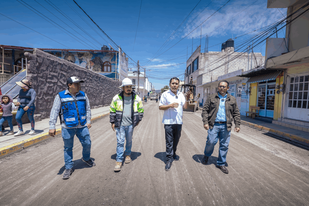 Autoridades municipales realizaron un recorrido de supervisión por la calle principal de Cuacnopalan, donde se llevan a cabo trabajos de rehabilitación vial, una intervención prioritaria solicitada por las y los vecinos de la comunidad.