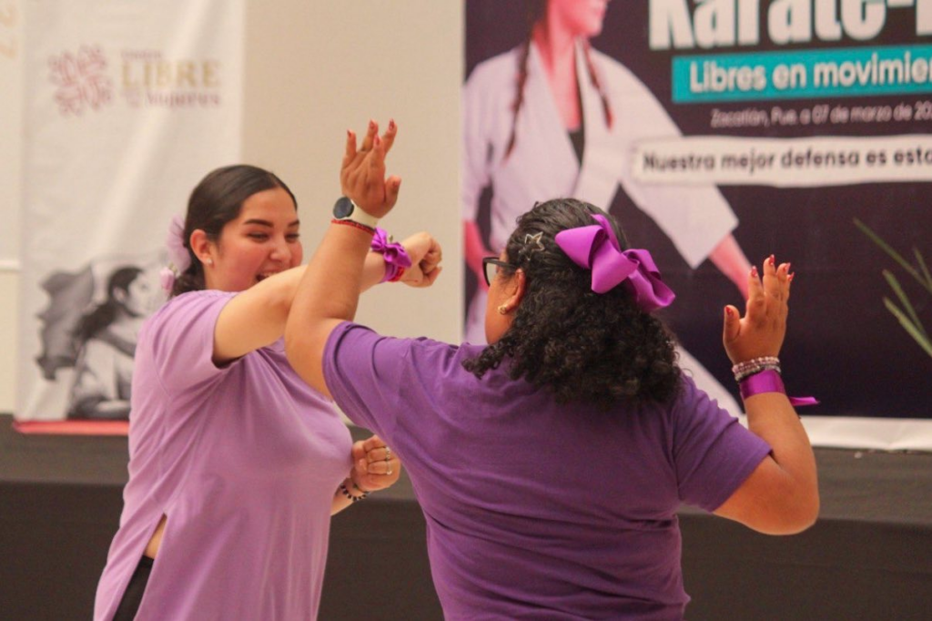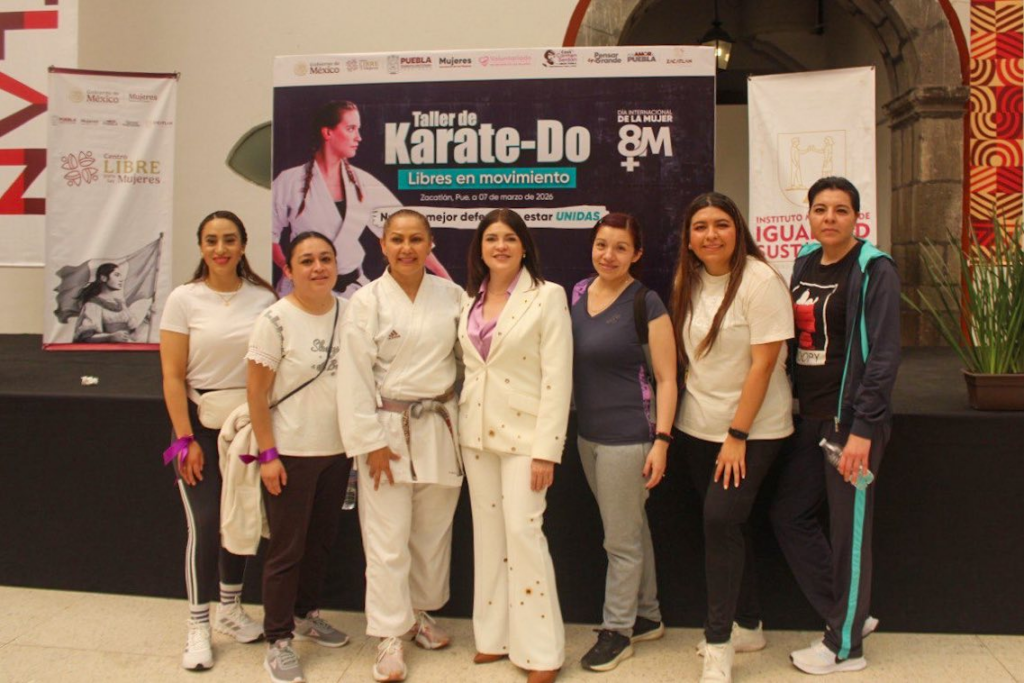 Zacatlán, Pue. — Como parte de las actividades por el Día Internacional de la Mujer, el municipio se sumó a la Clase Nacional de Defensa Personal con un taller especializado de Karate-Do, diseñado para dotar a las mujeres de herramientas prácticas para su protección y bienestar físico. Foto: Gobierno Municipal de Zacatlán La iniciativa, liderada por la presidenta municipal Bety Sánchez, contó con el respaldo estratégico de la Secretaría de las Mujeres del estado, encabezada por Yadira Lira; y fue planeada con el objetivo de fomentar la disciplina y el autocuidado, permitiendo que las participantes desarrollen una mayor confianza y autonomía. Foto: Gobierno Municipal de Zacatlán Durante la actividad, las autoridades destacaron que estas acciones forman parte su compromiso con este sector de la población y afirmaron que la administración espera continuar generando espacios seguros y preventivos para las mujeres y niñas de la entidad. Navegación de entradas Teziutlán sede del Foro Nacional “¡Porque Soy Mujer!” Inauguran Feria Artesanal 8M en Amozoc para fortalecer la economía de las mujeres