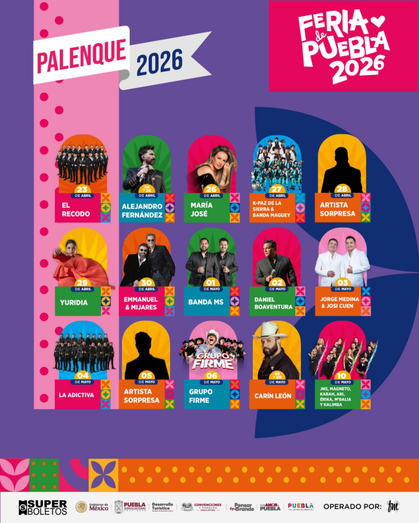 Puebla, Pue. — El gobernador Alejandro Armenta Mier presentó la cartelera oficial de la Feria de Puebla 2026, que como cada año tendrá lugar en la zona de los Fuertes del 23 de abril al 10 de mayo. Asimismo informó que las entradas tendrán un valor de 50 pesos. En ese contexto el mandatario informó que para este año la feria también funcionará como un espacio de promoción para los 12 pueblos mágicos, gastronomía típica, y la marca “Puebla 5 de Mayo”. Foto: Alejandro Armenta Armenta enfatizó que la seguridad será la prioridad, y adelantó que se trabaja en un operativo coordinado entre la Sedena, Marina, Guardia Nacional y policías local y estatal para garantizar el bienestar de todos los asistentes. Entre las novedades de esta edición resaltan “Pueblita” (área infantil), una Expo Militar, el pabellón de innovación tecnológica universitaria y un espacio dedicado al Mundial FIFA 2026. Foto: Alejandro Armenta La feria contará con los tradicionales conciertos gratuitos en el Teatro del Pueblo (incluidos en el costo de entrada), juegos mecánicos, pista de hielo y circo. Además, se ofrecerán espectáculos en el Palenque, cuyos boletos podrán adquirirse en taquillas físicas y plataformas digitales oficiales. Navegación de entradas 40% de avance en la construcción de los CITRA: José Luis García Parra Claudia Sheinbaum reporta llegada récord de 47.8 millones de turistas internacionales