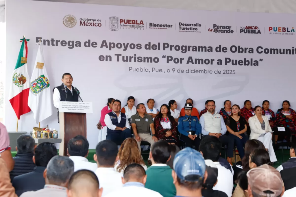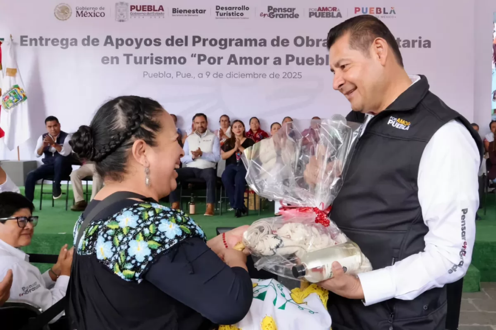Puebla, Pue. — El gobernador Alejandro Armenta Mier encabezó la entrega de más de 12 millones de pesos del Programa de Obra Comunitaria en Turismo, destinados a financiar 34 proyectos que buscan fortalecer la identidad y generar riqueza en 11 municipios poblanos. Foto: Alejandro Armenta El mandatario anunció un incremento significativo en este rubro, informando que el próximo año se destinarán 100 millones de pesos para obras de turismo comunitario en todo el estado, con el objetivo de beneficiar a los 11 municipios que se incluyen dentro del proyecto. Armenta subrayó que el programa recoge el sentimiento de los poblanos, alineándose con la máxima de la Cuarta Transformación: “Con el pueblo todo y sin el pueblo nada”. Foto: Alejandro Armenta Por su parte secretaria de Bienestar, Laura Artemisa García Chávez, informó que estos $12 millones se utilizarán para la dignificación de caminos, la adquisición de máquinas para la confección de artesanías, la rehabilitación de centros turísticos y la colocación de señalética y además se suman a una inversión anterior, alcanzando un total de $34.34 millones en 88 proyectos. Foto: Alejandro Armenta Asimismo Carla López-Malo Villalón, secretaria de Desarrollo Turístico, dio a conocer que gracias al impulso de estas acciones el número de visitantes en el estado aumento en un 5.3%, lo que dejó una derrama económica 2% mayor comparada con los resultados de l año anterior. Navegación de entradas Gobierno de Puebla Refuerza Transparencia con Conferencia por el Día Contra la Corrupción Oriental será beneficiado con 264 viviendas a través del Programa Vivienda para el Bienestar