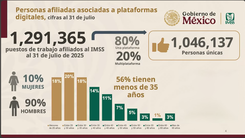 Ciudad de México, 6 de agosto de 2025 — En un hecho sin precedentes en la historia laboral del país, más de 1.2 millones de repartidores y conductores de plataformas digitales fueron incorporados al Instituto Mexicano del Seguro Social (IMSS), como parte del programa piloto que arrancó el 1 de julio. La medida es resultado de la reforma laboral promovida por el gobierno federal, que reconoce plenamente sus derechos como personas trabajadoras. Según información oficial difundida por La Jornada, el director general del IMSS, Zoé Robledo, informó que 1 millón 291 mil 365 personas vinculadas a plataformas fueron afiliadas en el primer mes, de las cuales 1 millón 46 mil corresponden a registros únicos. Esto contribuyó a alcanzar una cifra récord de 23 millones 591 mil 691 empleos formales registrados ante el Seguro Social. Derechos laborales para quienes sostienen la economía digital La reforma establece que quienes obtienen ingresos iguales o superiores al salario mínimo a través de estas plataformas serán considerados trabajadores formales, lo cual les garantiza seguridad social, acceso a guarderías, ahorro para el retiro, pensión, aguinaldo, vacaciones y posibilidad de obtener créditos de vivienda. Por su parte, aquellas personas que no alcanzan ese umbral de ingresos también fueron incorporadas al IMSS, aunque únicamente con cobertura por riesgos de trabajo, como lo explicó Robledo durante la conferencia matutina del gobierno federal. Jóvenes, precarizados y ahora con derechos La reforma beneficia particularmente a trabajadores jóvenes, que habían sido históricamente excluidos de derechos laborales bajo la lógica de “socios independientes”. De acuerdo con el reporte, el 80 por ciento de los trabajadores registrados laboran exclusivamente con una sola plataforma y el 74 por ciento considera esta actividad como su fuente principal de ingresos. Este cambio implica una transformación estructural en la economía digital, al garantizar condiciones de trabajo más dignas sin renunciar a la flexibilidad que estas plataformas ofrecen. Sheinbaum: justicia laboral para los olvidados del neoliberalismo La presidenta Claudia Sheinbaum Pardo calificó la medida como un avance histórico en justicia social, al reconocer y proteger los derechos de quienes, hasta hace poco, estaban fuera del marco de la seguridad laboral. Subrayó que la política responde al Compromiso 59 del Plan de Gobierno, que establece la obligación de garantizar derechos laborales a quienes trabajan mediante plataformas digitales. Durante la conferencia, Sheinbaum destacó que este tipo de acciones consolidan la segunda etapa de la Cuarta Transformación, centrada en cerrar las brechas sociales heredadas del modelo neoliberal. Navegación de entradas Programas sociales ya son derechos constitucionales y combaten la desigualdad: Claudia Sheinbaum Casonas abandonadas en el Centro Histórico, propiedad del gobierno, serán rehabilitadas para su uso: Alejandro Armenta