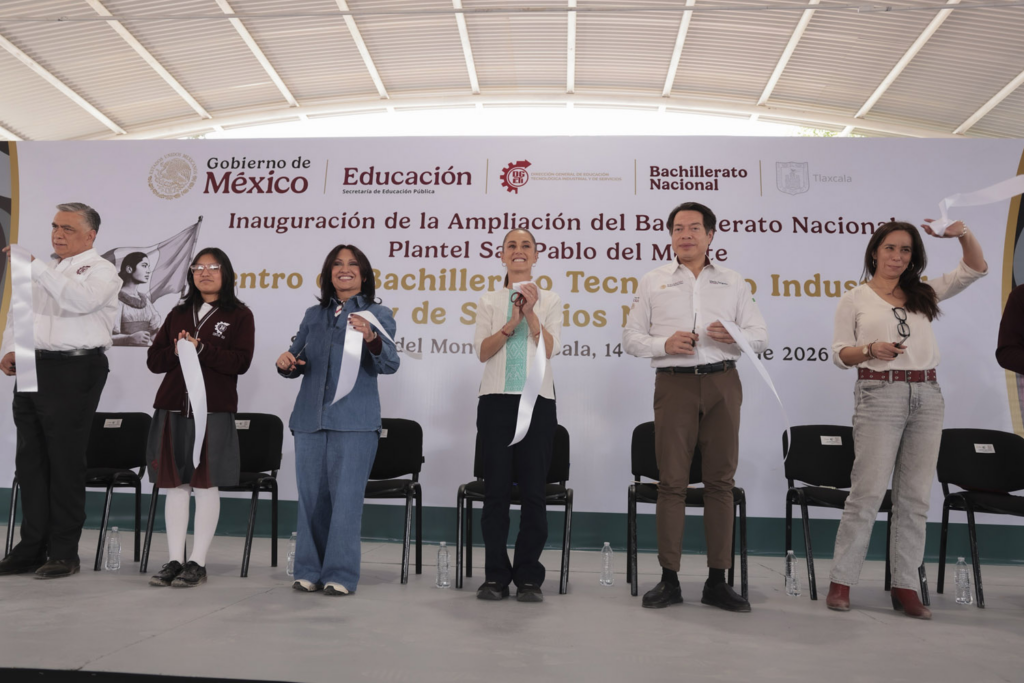 San Pablo del Monte, Tlax. — Como parte de las acciones para consolidar la Nueva Escuela Mexicana (NEM), la presidenta de México, Claudia Sheinbaum Pardo, inauguró la ampliación del Bachillerato Nacional Plantel San Pablo del Monte, donde anunció la actualización de los libros de texto gratuitos para incluir el reconocimiento histórico de las mujeres que han forjado la nación. Foto: Presidencia La Jefa del Ejecutivo Federal reafirmó que el modelo pedagógico de la NEM se mantiene firme, pero subrayó la importancia de visibilizar el papel femenino en la historia nacional. Asimismo, detalló que la meta para el cierre de 2026 es la creación de 150 mil nuevos lugares en educación media superior en todo el país, garantizando que las aulas cuenten con equipamiento tecnológico y espacios para el deporte y la cultura. Para quienes no puedan asistir de forma presencial, destacó el lanzamiento del Ciberbachillerato “Margarita Maza”. Foto: Presidencia Una de las innovaciones del Bachillerato Nacional es su esquema de doble certificación: las y los egresados obtendrán un certificado de Bachillerato General para acceder a la universidad y, simultáneamente, un certificado de Bachillerato Tecnológico avalado por instituciones de educación superior. Al respecto, el secretario de Educación Pública, Mario Delgado, enfatizó que el objetivo es brindar una formación técnica con un profundo sentido humanista, alejándose de los modelos que únicamente buscaban generar mano de obra. Foto: Presidencia Por su parte, la gobernadora de Tlaxcala, Lorena Cuéllar, informó que la entidad se suma a este esfuerzo con la creación de 25 nuevas opciones de bachillerato y nueve de educación superior, alcanzando una cobertura del 92% en el estado. Foto: Presidencia Con estas acciones, el Gobierno de México reafirma su compromiso con la educación y el acceso a esta como un derecho constitucional que fortalece el tejido social y refleja la diversidad y la justicia social. Navegación de entradas Pepe Chedraui entrega más de 9 mil apoyos alimentarios a familias del sur de la capital Más de 160 cafeticultores de Xicotepec reciben fertilizantes del programa estatal de innovación