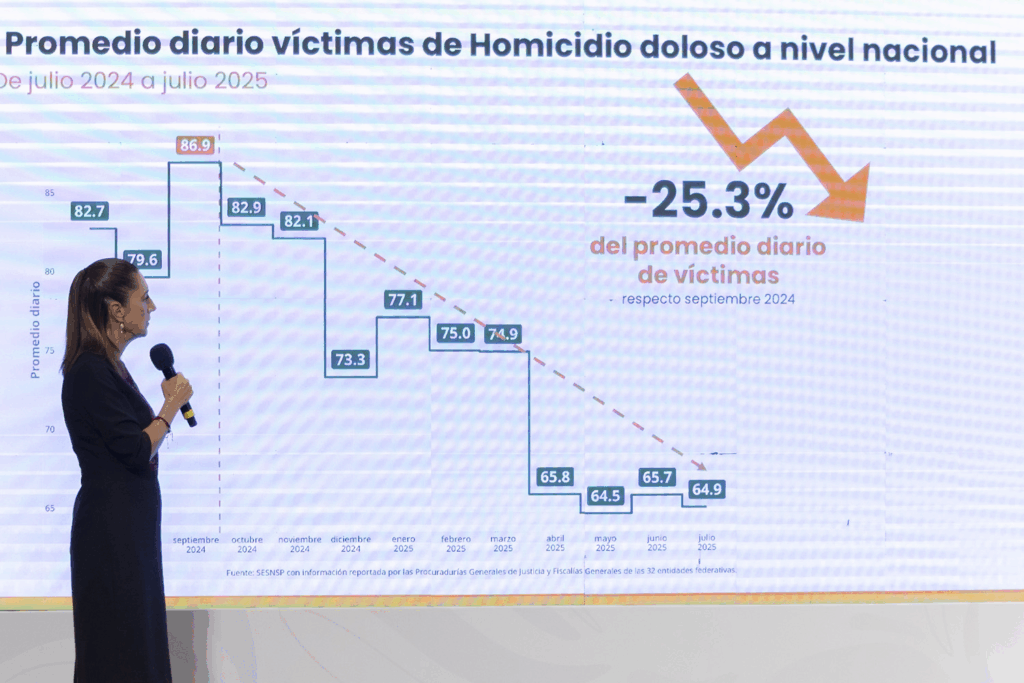 Ciudad de México.— El Gobierno de México, a través de la Guardia Nacional, informó que gracias a la implementación de la estrategia Balam y la operación Cero Robos hoy existe una reducción significativa en el robo a carreteras. De acuerdo con el balance presentado, el delito tuvo una disminución de 27% a nivel nacional, mientras que en autopistas como México-Querétaro y México-Puebla la reducción llegó al 55% y 50%, respectivamente. Foto: Presidencia La presidenta Claudia Sheinbaum Pardo reiteró que su administración tiene como objetivo garantizar la seguridad y la paz en todo el país, a través de un sistema de justicia eficaz y que aplique los cuatro ejes de la Estrategia Nacional de Seguridad, mismos que hasta ahora han permitido reducir en un 25% los casos de homicidio doloso. Foto: Presidencia El comandante de la Guardia Nacional, Hernán Cortés Hernández, detalló que la estrategia Balam ha sido aplicada exitosamente en 12 estado y 22 tramos carreteros donde fue posible aumentar en un 61% la recuperación de vehículos de carga robados. Además, como parte de la operación Cero Robos las autoridades recuperaron 30 unidades, frustraron 13 intentos de asalto y detuvieron a 18 personas, además de asegurar armas, cartuchos, cargadores y 58 kilogramos de drogas. En la autopista Mazatlán–Culiacán se reportó también una reducción del 46.6 por ciento en el robo de vehículos particulares. Dentro de las acciones de proximidad social, la Guardia Nacional desplegó desde el 25 de julio 47 mil 113 efectivos y 8 mil 730 vehículos en 39 municipios de 21 estados, en beneficio de más de 76 mil personas con el programa Guardia Nacional Contigo y actividades cívico-sociales. Foto: Presidencia Por su parte, el secretario de Seguridad y Protección Ciudadana, Omar García Harfuch, informó que entre octubre de 2024 y agosto de 2025 se logró la detención de más de 30 mil 700 personas por delitos de alto impacto, además del aseguramiento de 15 mil 496 armas, 240 toneladas de droga, entre ellas 3.5 millones de pastillas de fentanilo y 47 toneladas de cocaína, así como la inhabilitación de mil 356 laboratorios clandestinos en 21 estados. Foto: Presidencia En materia de extorsión, del 6 de julio al 24 de agosto se recibieron 32 mil 622 llamadas al número 089, de las cuales el 69% fueron intentos frustrados gracias a la orientación en tiempo real. En este mismo periodo fueron detenidas 212 personas en 15 entidades, principalmente en Michoacán, Guerrero, Estado de México, Tabasco y Oaxaca. La secretaria de Gobernación, Rosa Icela Rodríguez, destacó los avances en la Estrategia Nacional por la Paz y contra las Adicciones, con talleres y pláticas de prevención que han alcanzado a 61 mil niñas y niños en 89 municipios. Asimismo, se organizaron Ferias de Paz, jornadas comunitarias y actividades deportivas que han beneficiado a más de 417 mil personas. Foto: Presidencia Finalmente, con el programa “Sí al Desarme, Sí a la Paz”, en 29 estados se lograron intercambiar de manera voluntaria 5 mil 457 armas de fuego y más de 5 mil juguetes bélicos, reafirmando el compromiso del Gobierno de México con la construcción de un entorno seguro y pacífico. Navegación de entradas Gobierno de Puebla anuncia inversión histórica para la 60ª edición del Festival Huey Atlixcáyotl México y Brasil refuerzan vínculos en industria, energía, salud y medio ambiente