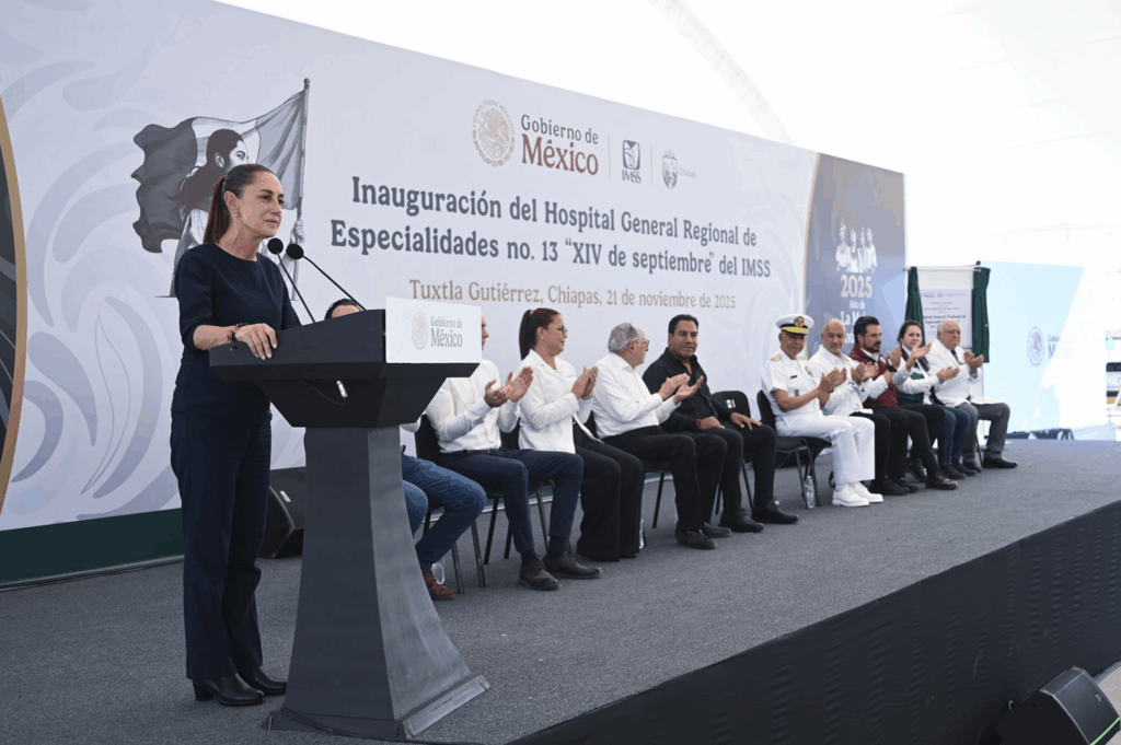 Tuxtla Gutiérrez, Chiapas — La presidenta Claudia Sheinbaum Pardo encabezó en Chiapas la inauguración del Hospital General de Especialidades No. 13 del IMSS. La obra, que fue realizada con una inversión de 2,929 millones de pesos, beneficiará a más de un millón de derechohabientes. Foto: Presidencia La mandataria explicó que la visión de la Cuarta Transformación es homologar los tres sistemas públicos de salud (IMSS, ISSSTE e IMSS Bienestar) para que todos los mexicanos tengan acceso universal y gratuito. Anunció que, como primer paso, el proceso de credentialización para el nuevo sistema iniciará en enero de 2026. “Vamos a cumplir con lo que dice el cuarto constitucional, que el acceso a la salud sea un derecho universal”, puntualizó. Foto: Presidencia El director del IMSS, Zoé Robledo, detalló que el nuevo hospital cuenta con 261 camas, seis quirófanos y el resonador magnético más potente del estado. Se estima que la unidad otorgará 18,000 atenciones y, en los próximos 24 meses. Foto: Presidencia Como parte del desarrollo económico de la región, la presidenta anunció el proceso de licitación de dos nuevos Polos de Desarrollo Económico para el Bienestar (PODECOBI) en Tapachula, que se suman al de Arriaga. El gobernador Eduardo Ramírez agradeció la obra, calificándola como un paso clave hacia el “Buen Vivir” del estado. Foto: Presidencia Finalmente, Sheinbaum invitó a los mexicanos a una celebración masiva en el Zócalo el próximo 6 de diciembre por el séptimo aniversario de la Cuarta Transformación. Navegación de entradas Puebla Instala Modelo de Paz Comunitario; Busca Armenta Unir Fuerzas contra la Inseguridad “Frenando la Violencia”: Celebran Rodada por la Libertad en San Pedro Cholula