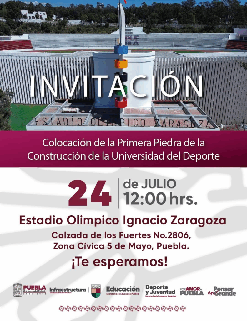 Puebla, Pue.— El gobernador Alejandro Armenta Mier dará inicio a la construcción de la Universidad del Deporte de Puebla, un ambicioso proyecto educativo y deportivo que contará con una inversión superior a 220 millones de pesos y estará ubicado en el Estadio Olímpico Zaragoza, en la histórica zona de Los Fuertes de Loreto y Guadalupe. El evento será celebrado al mediodía de hoy jueves 24 de julio del presente año y se espera contar con la presencia del medallista olímpico Rommel Pacheco. El mandatario colocará la primera piedra de esta nueva institución que tiene como objetivo principal revolucionar la formación y educación deportiva en el país. La universidad — que será dirigida por el entrenador José Luis Sánchez Solá, “El Chelís”— estará lista para recibir a los estudiantes en mayo de 2026 y contará con más de 57 mil metros cuadrados de primer nivel con espacios destinados al aprendizaje y el deporte tales como una alberca olímpica, cancha de basquetbol, cuatro canchas de pádel, áreas de box, ping pong, artes marciales, gimnasio, auditorio y estacionamiento, además de 40 aulas que albergarán a una matrícula de mil 500 estudiantes. Este proyecto se enmarca en la visión del mandatario poblano de consolidar el deporte como una política pública prioritaria, tras haber saldado una deuda millonaria con la CONADE al inicio de su administración. La Universidad del Deporte de Puebla ofrecerá cinco licenciaturas especializadas: Gestión y Administración de Centros e Instituciones Deportivas Psicología Deportiva Ciencias del Deporte Comunicación Deportiva Cultura Física, con especialidades en futbol, basquetbol y beisbol Con esta oferta académica, la institución tiene como meta formar líderes y profesionales del deporte que impulsen el alto rendimiento, la innovación estratégica y el desarrollo del talento deportivo en México. Navegación de entradas Con más de 5 mil protagonistas se realiza la Asamblea de Morena en Cuautlancingo Puebla se suma a la estrategia “Cero Robos” para reforzar la seguridad en carreteras federales