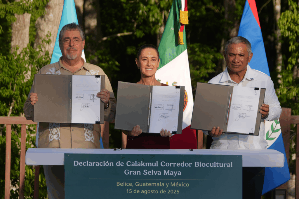 Calakmul, Camp.— En un acto sin precedentes, la presidenta de México, Claudia Sheinbaum Pardo, firmó junto a sus homólogos de Guatemala, Bernardo Arévalo de León, y Belice, John Antonio Briceño, un acuerdo trilateral para la creación del Corredor Biocultural de la Gran Selva Maya (CBGSM). Este acuerdo tiene como fin proteger 5.7 millones de hectáreas de biodiversidad pertenecientes a Mesoamérica y beneficiará a más de 7 mil especies, que incluyen 200 en riesgo, 50 prioritarias y 250 más que son endémicas en nuestro país. Foto: Presidencia Durante la ceremonia, Sheinbaum destacó la relevancia del acuerdo: “Hoy podemos decirle al mundo que unimos nuestras voluntades para preservar y restaurar esta riqueza biológica y cultural extraordinaria. Es un acuerdo histórico y hermoso”. Como parte de su compromiso, México anunció la expansión del programa Sembrando Vida hacia regiones de Guatemala y Belice, para regenerar suelos, recuperar cobertura forestal, fomentar la autosuficiencia alimentaria y mejorar el bienestar de las comunidades rurales. Foto: Presidencia El presidente guatemalteco, Bernardo Arévalo, afirmó que el acuerdo representa un modelo de desarrollo sostenible que honra la historia y protege el futuro. Por su parte, el primer ministro beliceño, John Briceño, lo calificó como “una semilla permanente de cooperación” e hizo un llamado global a adoptar la protección ambiental como un valor universal. El corredor trinacional garantizará la conectividad ecológica de los ecosistemas de la Península de Yucatán, incluyendo selvas tropicales, petenes y manglares, esenciales para especies emblemáticas como el jaguar, el tapir, el mono araña y el quetzal. Esta región es clave para enfrentar la crisis climática y conservar la biodiversidad, ya que es considerada la segunda selva tropical más grande del continente. Foto: Presidencia Además, el CBGSM estará conformado por 50 áreas protegidas 11 en Belice, 27 en Guatemala y 12 en México, entre ellas la Reserva de la Biosfera Calakmul, el Parque Nacional Mirador-Río Azul y el Área de Conservación Río Bravo. Dentro de la declaración de los países se reconoce el papel fundamental que tienen las comunidades indígenas mayas y afrodescendientes como protectores de la naturaleza, promoviendo además su participación en la conservación y en la lucha contra la tala ilegal y los incendios forestales. Foto: Presidencia Por si fuera poco, las acciones también incluyen el intercambio tecnológico, capacitación en manejo del fuego y gestión sostenible de recursos forestales, mismas que estarán a cargo de la Secretaría de Medio Ambiente de México, el Consejo Nacional de Áreas Protegidas de Guatemala y el Ministerios de Desarrollo Sostenible de Belice. Finalmente, se anunció que a partir de 2026, cada 15 de agosto se celebrará el “Día de la Gran Selva Maya” y se otorgará el reconocimiento al “Mérito a la Conservación de la Gran Selva Maya”, como homenaje a quienes contribuyen a su protección. Navegación de entradas ¡Puebla, Corazón Firme de la Transformación! Firmó el gobernador Alejandro Armenta el Convenio del Polo de Desarrollo Económico del Bienestar