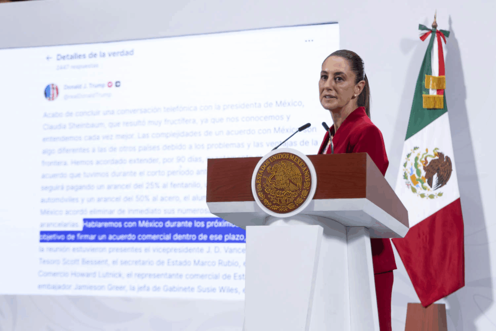 Ciudad de México. — La presidenta Claudia Sheinbaum Pardo confirmó este lunes que la imposición de aranceles especiales de Estados Unidos a productos mexicanos, prevista para el próximo 1 de noviembre, ha sido desactivada, tras una conversación telefónica que sostuvo el sábado con su homólogo estadounidense, Donald Trump. Ambos mandatarios acordaron otorgar “unas semanas más” a sus equipos negociadores para finalizar los temas comerciales pendientes. Foto: Presidencia Durante su conferencia matutina, Sheinbaum explicó que la llamada fue breve pero crucial para asegurar una postura común antes de que expirara el plazo original de tres meses este viernes, establecido para resolver 54 barreras no arancelarias identificadas por Estados Unidos. Foto: Presidencia “Hablé con el presidente Trump el sábado (…) acordamos hablarnos nuevamente en algunas semanas”, detalló la mandataria. “[Confirmamos que] seguimos trabajando y no hay ninguna situación, por lo pronto, en donde pudiera haber el 1º de noviembre algún arancel especial”, sentenció Sheinbaum, describiendo la conversación como “cordial”. Foto: Presidencia La presidenta añadió que, aunque el foco principal fue el tema comercial, ambos líderes reconocieron que van “muy bien” en los temas de seguridad y migración. El objetivo ahora, explicó, es buscar cerrar el acuerdo comercial pendiente en las próximas semanas, antes de que inicien formalmente las negociaciones para la revisión del Tratado entre México, Estados Unidos y Canadá (T-MEC). Foto: Presidencia Mientras tanto, el secretario de Economía, Marcelo Ebrard, se encuentra en la cumbre de APEC, donde se espera que se reúna con su contraparte estadounidense para dar seguimiento a las negociaciones. Con este acuerdo, se alivia la presión inmediata de la fecha límite del 1 de noviembre, permitiendo que el diálogo continúe. Navegación de entradas Anuncia Sheinbaum: Tren México-Toluca Operará Completo a Fines de Enero Rehabilitar 5 mil calles en la zona metropolitana. El objetivo de Alejandro Armenta