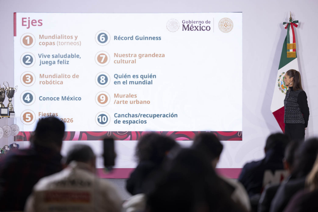 Ciudad de México — Claudia Sheinbaum Pardo, presidenta de México, encabezó la presentación del Mundial Social 2026, una estrategia nacional que contempla la realización de 74 Mundialitos y Copas de Fútbol en los 32 estados del país, con el fin de que la justa deportiva beneficie directamente a la población. Foto: Presidencia Durante su conferencia matutina, la mandataria informó que las inscripciones estarán abiertas a través de diversas instituciones como la SEP, Conade, IMSS, Imjuve y las Secretarías de las Mujeres y de Ciencia. El objetivo, señaló, es que el talento mexicano encuentre oportunidades reales, por lo que se contará con la presencia de visores y reclutadores profesionales en los torneos. Foto: Presidencia La secretaria de Gobernación, Rosa Icela Rodríguez, detalló que este plan se basa en 10 ejes que incluyen desde la recuperación de espacios públicos hasta un Mundialito de Robótica. Por su parte, la coordinadora Gabriela Cuevas resaltó que esta iniciativa busca poner a las y los mexicanos en el centro de la celebración mundialista, democratizando el acceso al deporte. Foto: Presidencia Las distintas dependencias federales anunciaron datos y fechas clave para la participación ciudadana: Copa Escolar (SEP): El secretario Mario Delgado convocó a estudiantes de primaria, secundaria y bachillerato. Las inscripciones inician el 2 de febrero. La final nacional se disputará el 6 de junio en el Estadio Olímpico Universitario. Copa Conade y categorías especiales: Rommel Pacheco destacó que se busca crear “la cantera más grande del mundo” con seis copas, incluyendo la Copa Paralímpica, Copa Barrio y la Copa Edad de Oro. Torneos IMSS: Zoé Robledo anunció el registro del 26 al 30 de enero para categorías como Futsal Femenil Sub 21, Fútbol IMSS T21 (para personas con Síndrome de Down) y Fútbol sin correr para adultos mayores. Mujeres Libres: Citlalli Hernández confirmó que la convocatoria para este torneo nacional se publicará el 9 de febrero, con una gran final programada para octubre. Ciencia y Juventud: Se realizará la copa de robótica FutBotMx en junio y una Jornada Nacional de Fútbol para las Juventudes el 26 de marzo, donde el Imjuve espera la participación de 500 mil jóvenes. Foto: Presidencia Con este proyecto, el Gobierno de México busca que el Mundial 2026 no solo sea un evento de estadios, sino una herramienta de transformación social, salud y convivencia comunitaria en cada rincón de la República. Navegación de entradas Presenta Universidad del Deporte 65% de avance; abrirá sus puertas en mayo: Alejandro Armenta Pepe Chedraui posiciona a la capital como el primer municipio del estado en la Alianza Global por los Cuidados