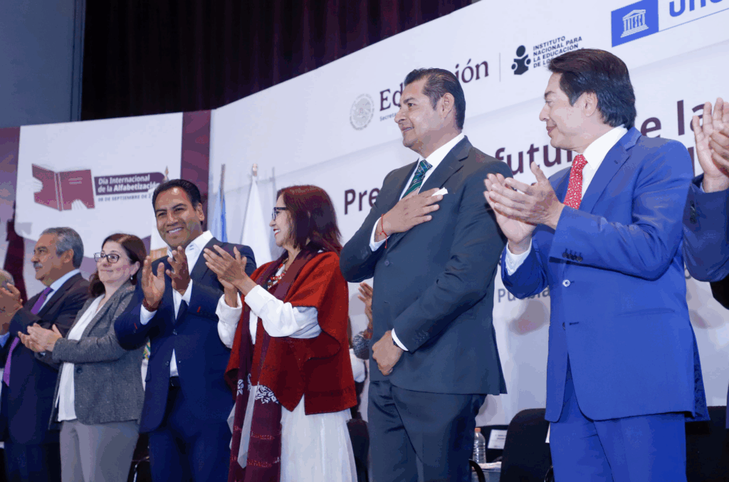 Puebla, Pue.— Durante el Foro “Presente y futuro de la Alfabetización en México y el mundo”, celebrado en el Museo Internacional del Barroco, autoridades federales y estatales reafirmaron su compromiso por eliminar el analfabetismo en el país, un objetivo que se alinea con la política educativa de la presidenta Claudia Sheinbaum Pardo. Foto: Gobierno del Estado de Puebla Durante el evento, el secretario de Educación del Gobierno de México, Mario Delgado Carrillo, aseguró que gracias al trabajo coordinado entre la federación, Puebla, Chiapas y otras entidades, pronto se alcanzará la “bandera blanca” en alfabetización. Mencionó también que el objetivo fundamental es reducir el índice de personas que no saben leer ni escribir a menos del 4%. “Alfabetizar es crear comunidad y la comunidad alfabetizada es la mejor defensa contra la injusticia y la indiferencia”, señaló. Destacó que entre enero y junio de este año, 23 mil mujeres mayores de 15 años aprendieron a leer y escribir, 47 mil concluyeron la primaria y 75 mil obtuvieron su certificado de secundaria. En representación de la presidenta, Leticia Ramírez Amaya, coordinadora general de Asuntos Intergubernamentales, subrayó que la alfabetización convoca a un compromiso colectivo para construir una sociedad más justa y equitativa. El gobernador de Puebla, Alejandro Armenta Mier, enfatizó que el analfabetismo es un reflejo de la ineficiencia gubernamental y destacó que en el estado cerca de 300 mil personas no saben leer ni escribir, lo que lo ubica en el sexto lugar nacional. Afirmó que combatir este rezago es una obligación social así como un acto de amor por Puebla y México. Foto: Gobierno del Estado de Puebla Por su parte, la oficial nacional de la UNESCO, Rosa Wolpert, resaltó el esfuerzo conjunto realizado en la entidad y señaló que la alfabetización es una herramienta para consolidar la paz, la justicia, la igualdad y la tolerancia. El director del INEA, Armando Contreras Castillo, informó que actualmente se atiende a 257 mil personas en proceso de alfabetización, y se prevé que para finales de 2025 México registre un índice de 3.8% de analfabetismo, lo que lo consolidaría como territorio alfabetizado. Foto: Gobierno del Estado de Puebla En el foro también participó el gobernador de Chiapas, Eduardo Ramírez Aguilar, quien presentó el programa “Chiapas Puede”, con el que buscan alfabetizar a más de 500 mil personas, al señalar que “la batalla más importante no es contra la violencia, sino contra la ignorancia”. El director del IEEA Puebla, Andrés Morales Zayas, destacó que el esfuerzo coordinado entre los tres órdenes de gobierno, universidades y sociedad civil es clave para combatir el rezago educativo. Navegación de entradas No habrá nuevos impuestos en el Paquete Económico 2026: Claudia Sheinbaum Gobierno de México impulsa proyectos comunitarios en pueblos indígenas y afromexicanos; avanzan programas de Bienestar