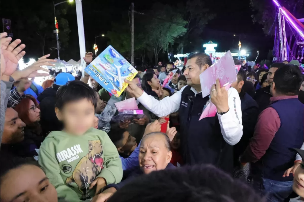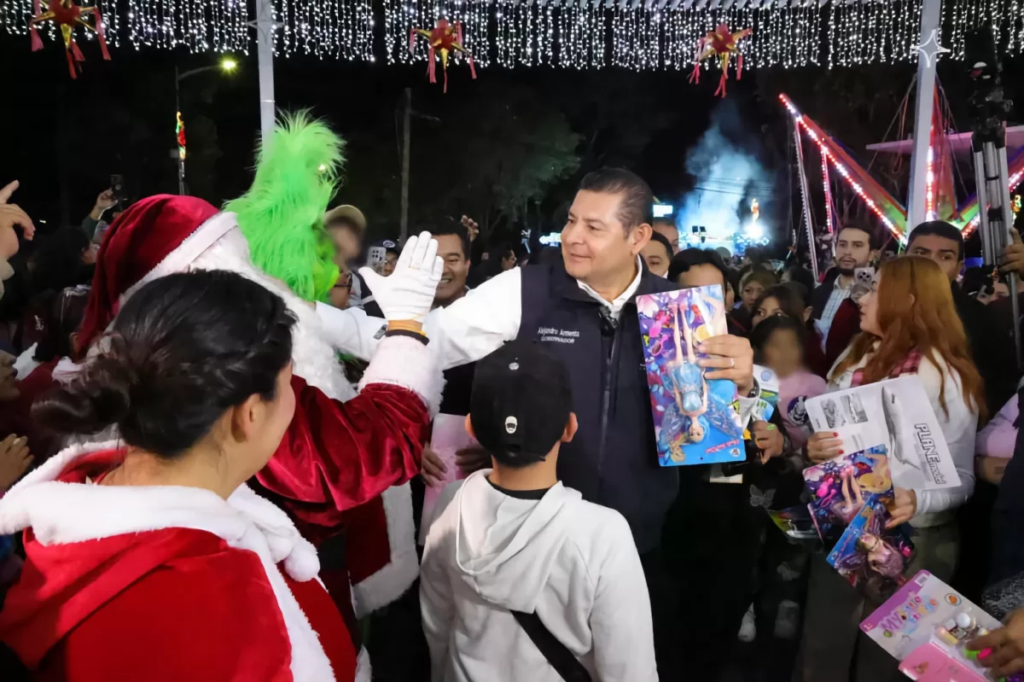 Puebla, Pue. — El gobernador Alejandro Armenta encabezó la entrega de 5 mil juguetes a niñas y niños poblanos durante su recorrido por el Festival Navideño “Por Amor a Puebla”, instalado en el Centro Expositor de los Fuertes. Foto: Alejandro Armenta El mandatario estatal recorrió la zona, donde saludó a miles de asistentes y reafirmó que el festival tiene un doble propósito: ofrecer un espacio de recreación gratuito para las familias y servir como plataforma económica para artesanos y productores del interior del estado. “Buscamos generar riqueza comunitaria y promover las riquezas culturales de nuestra entidad”, destacó el titular del Ejecutivo. Foto: Alejandro Armenta El festival se ha consolidado como un referente de paz y solidaridad, ofreciendo atracciones sin costo como un tobogán gigante, juegos mecánicos, villa iluminada y espectáculos artísticos; acciones que fortalecen los lazos sociales entre la ciudadanía y el gobierno, transformando a Puebla en un estado unido y lleno de esperanza. Navegación de entradas Puebla se consolida como referente del turismo de negocios; genera derrama de 395 mdp en 2025 Histórico acuerdo en Cananea: Sheinbaum anuncia inversión de 2,222 mdp para salud, agua y remediación ambiental