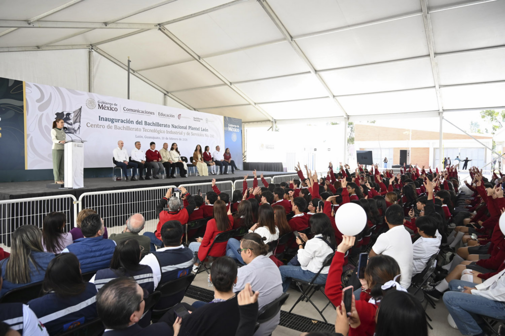 León, Gto. — La presidenta de México, Claudia Sheinbaum Pardo, encabezó la inauguración del nuevo Centro de Bachillerato Tecnológico Industrial y de Servicios (CBTIS) No. 292 en esta ciudad. El plantel brindará acceso a más de mil estudiantes y forma parte del compromiso de la federación por garantizar que ningún joven abandone sus estudios por falta de espacios. Foto: Presidencia Durante el evento, la jefa del Ejecutivo Federal subrayó que la educación es un derecho y no un privilegio, por lo cual su administración tiene como meta crear 150 mil nuevos lugares en educación media superior para finales de este 2026. Sheinbaum se manifestó en contra de los exámenes de admisión en este nivel y anunció una revisión a los planes de estudio para simplificar la carga académica. Foto: Presidencia El nuevo complejo educativo requirió una inversión de 48 millones de pesos en infraestructura y 17 millones adicionales en equipamiento. El secretario de Infraestructura, Comunicaciones y Transportes, Jesús Antonio Esteva Medina, detalló que el plantel cuenta con cinco edificios, 12 aulas y cuatro laboratorios especializados. Foto: Presidencia Por su parte, la gobernadora de Guanajuato, Libia Dennise García Muñoz Ledo, celebró la coordinación con el Gobierno de México, resaltando que el estado donó el terreno de 30 mil metros cuadrados para esta obra. La mandataria estatal anunció que, para complementar el esfuerzo federal, el próximo año se reconvertirán 40 secundarias en preparatorias vespertinas. Finalmente, la presidenta informó que a finales de este mes se dispersarán los pagos de la Beca Benito Juárez para quienes ya cuentan con tarjeta, asegurando el sustento económico de las y los estudiantes del estado. Navegación de entradas Puebla Brilla llega a Héroes de Puebla Chila de las Flores inaugura Casa de Cofradía en San José Chapultepec