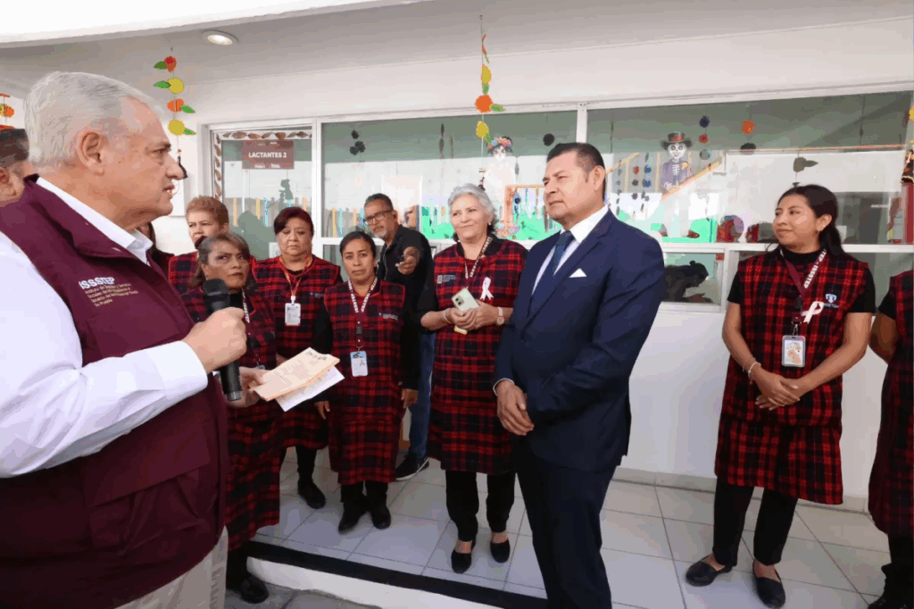 Puebla, Pue. — El gobernador Alejandro Armenta encabezó la reapertura de la Estancia Infantil Número 1 del ISSSTEP, espacio que abre sus puertas luego de haber sido cerrado durante la pandemia, y hoy luce renovado tras una rehabilitación integral. Foto: Alejandro Armenta El mandatario calificó la reapertura como un “acto de justicia y humanismo” hacia las madres y padres trabajadores, quienes ahora tendrán la tranquilidad de saber que sus hijos se encuentran en un entorno digno y seguro mientras ellos laboran. “Fortalecer al ISSSTEP es una prioridad”, afirmó Armenta, destacando la mejora en los servicios para los derechohabientes. Foto: Alejandro Armenta Acompañado por el director general del ISSSTEP, Luis Antonio Godina Herrera, el gobernador develó la placa y recorrió las instalaciones, que fueron totalmente modernizadas. Se renovaron las áreas de lactantes y maternales, cocina, banco de leche, salones de clases y el patio de juegos, todo con equipamiento nuevo. Foto: Alejandro Armenta El director del ISSSTEP informó que la estancia atiende actualmente a 43 niñas y niños, pero tiene capacidad para 120. Explicó que la remodelación permitió transformar antiguas oficinas en espacios educativos modernos y funcionales. Foto: Alejandro Armenta La emoción fue palpable entre el personal con décadas de servicio. “Pensamos que nunca volvería a abrir, pero hoy es un sueño hecho realidad”, expresó Leticia González López, auxiliar con 38 años de trayectoria. María Elena, con 32 años de servicio, también celebró: “Todo está completamente remodelado… es una gran alegría volver a recibir a los niños”. Estas voces reflejan el renacimiento de un espacio considerado un segundo hogar para muchas familias al servicio de Puebla. Navegación de entradas Colonia Del Valle Alcanza 100% de Cobertura LED con Programa “Puebla Brilla” Día de Muertos 2025, dedicado a las “Ancestras de México”: Claudia Sheinbaum