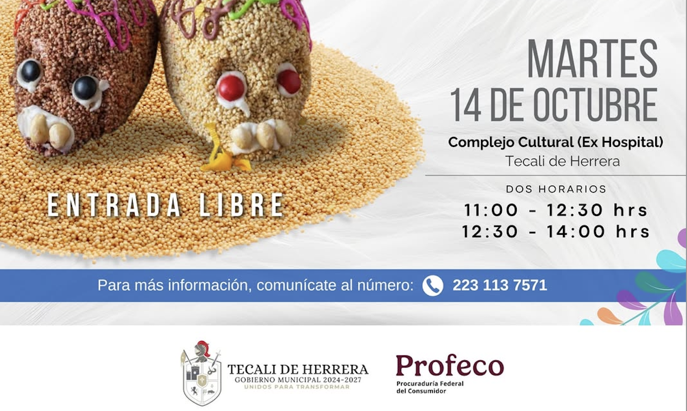 Municipales Science Tecali de Herrera invita a taller gratuito para impulsar la tradición local octubre 8, 2025 El Humanista. Tecali de Herrera, Puebla.- El municipio presidido por Alan Gilberth Amador Gómez, en coordinación con la Procuraduría Federal del Consumidor Puebla (Profeco), invita a la ciudadanía a participar en el…